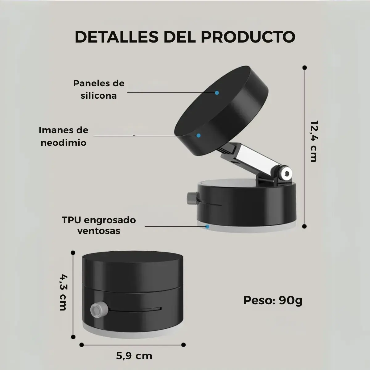💪 Imán potente + ventosa de alta adherencia